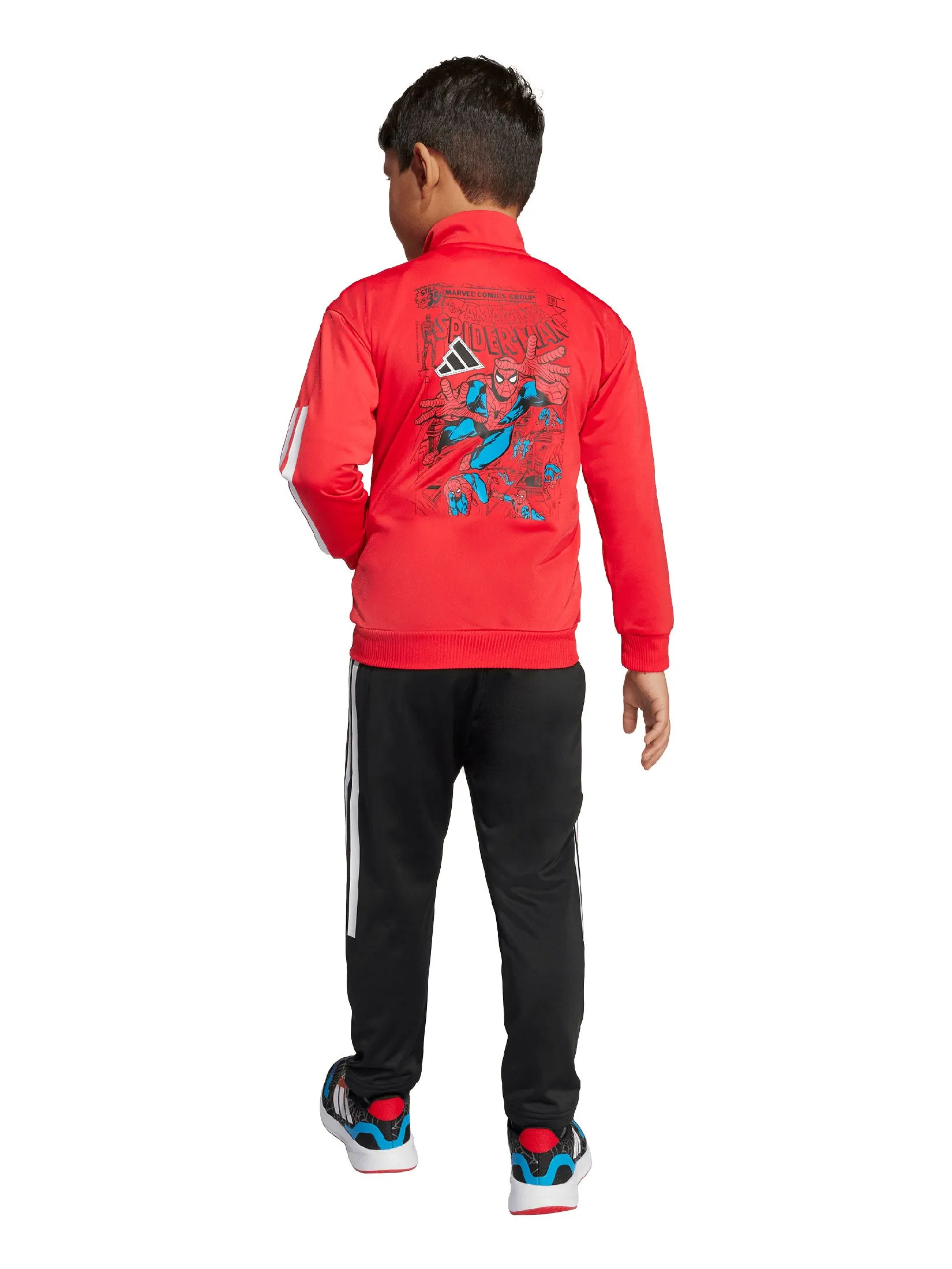ADIDAS KIDS With this adidas tracksuit, your young superhero will be ready for action. Inspired by Spider-Man, it features a colourful comic book cover print on the back of the track jacket. Soft tricot fabric and a relaxed fit keep them comfortable whether they’re swinging through the city or playing on the playground.