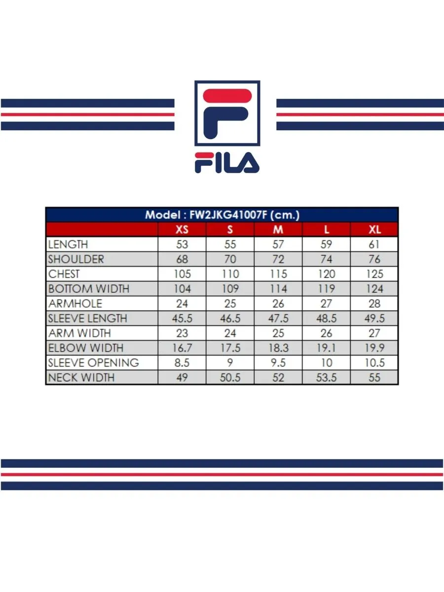FILA DNA Collection Jacket (Model : FW2JKG41007F)is crafted from high-quality materials, featuring a soft, smooth, lightweight fabric that ensures comfort without causing irritation to the skin. It allows for excellent breathability and flexibility, suitable for everyday wear.
