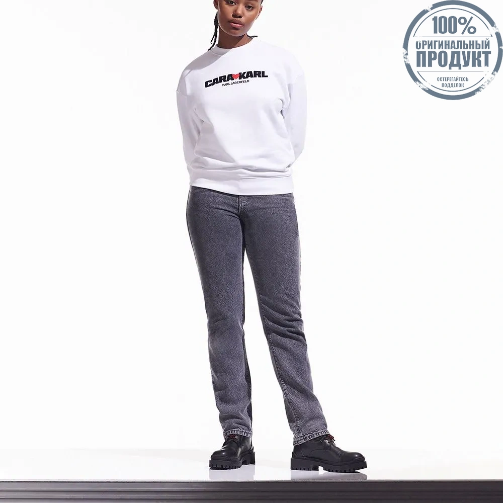 This relaxed, organic-cotton sweatshirt is crafted in a gender-neutral silhouette and features standout CARA LOVES KARL artwork at the chest. Pair yours with the CARA LOVES KARL wide-leg trousers for laidback tailoring or with the collection’s classic denim pieces for casual-cool styling. This graphic sweat belongs to a collection of gender and size-inclusive styles designed exclusively in collaboration with model, actor, activist and much-loved friend of Karl Lagerfeld, Cara Delevingne.