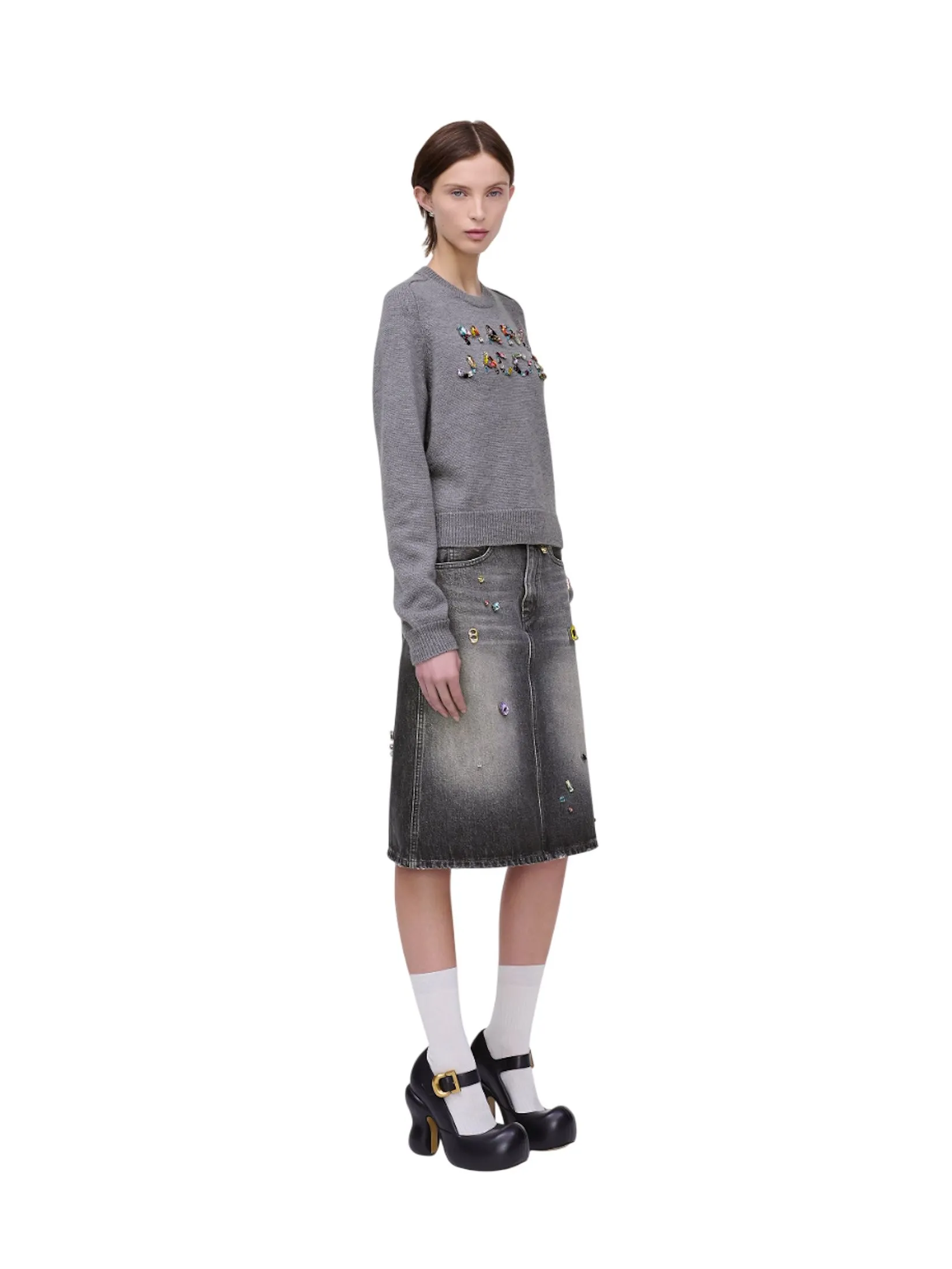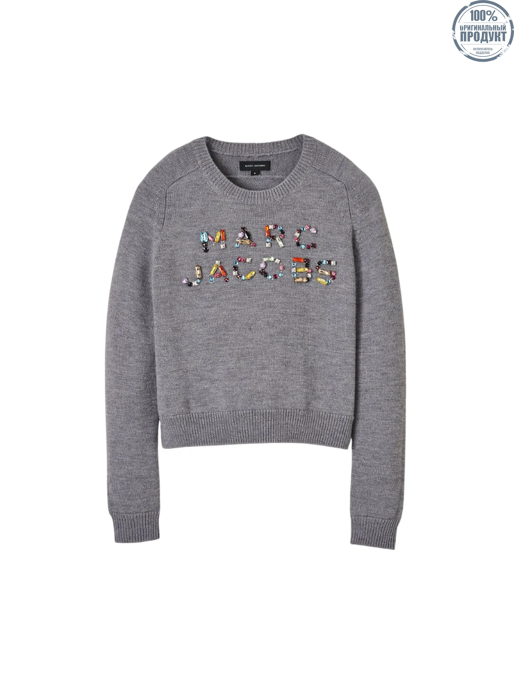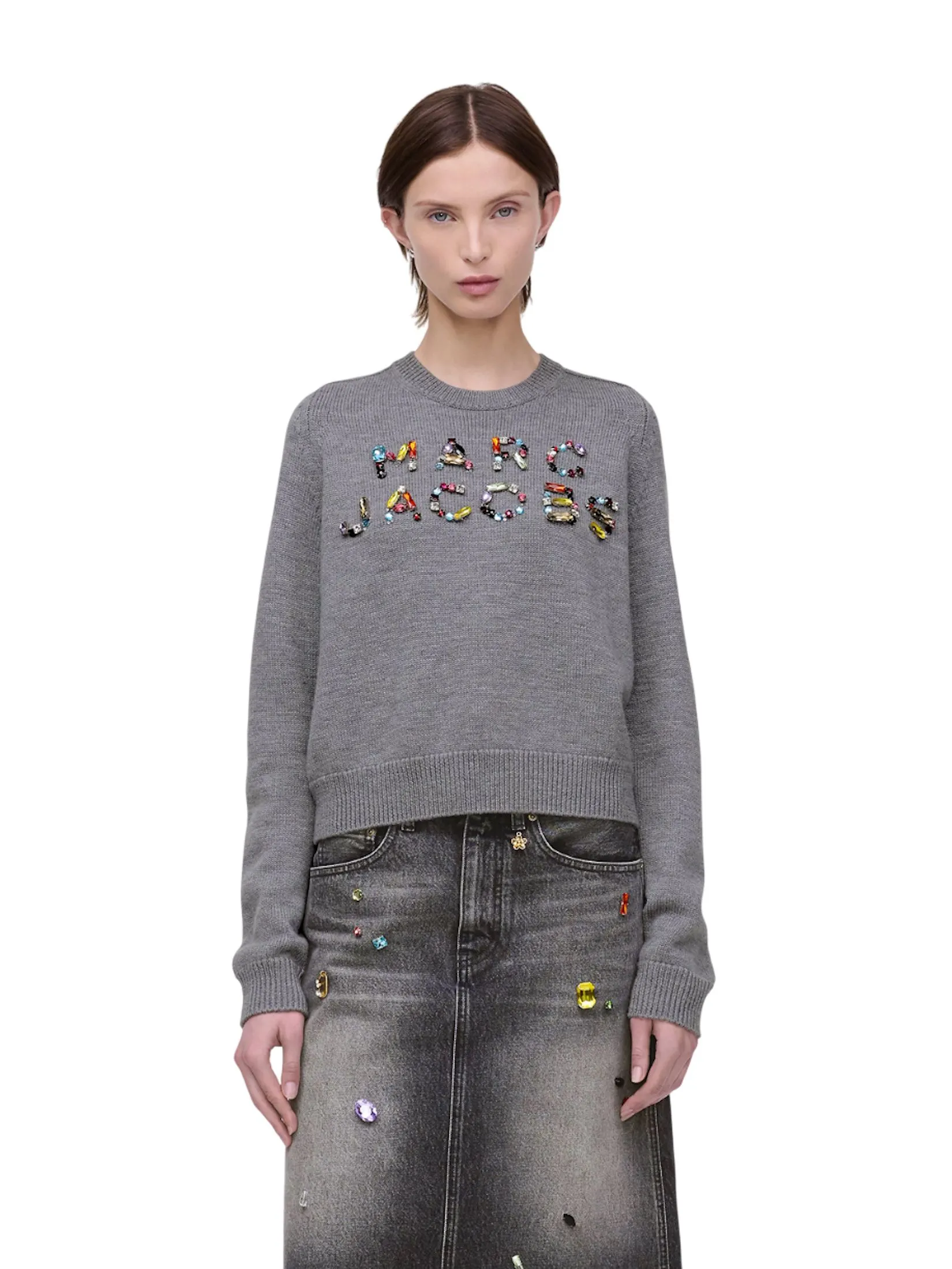 MARC JACOBS THE GEM KNIT LOGO CREWNECK STEEL GREY