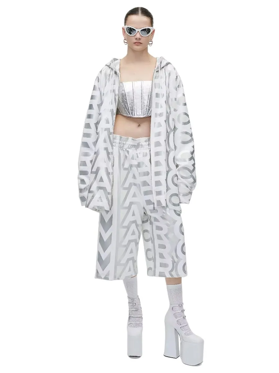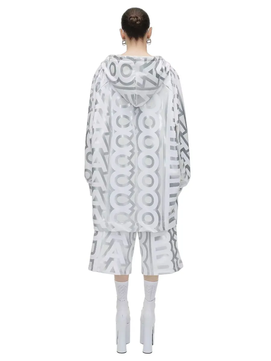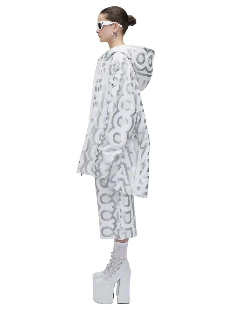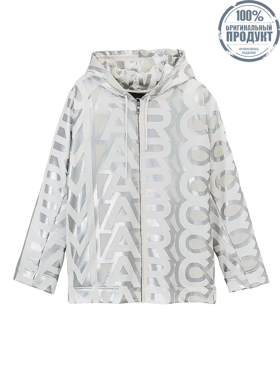 MARC JACOBS THE THE MONOGRAM ZIP HOODIE SILVER/BRIGHT WHITE