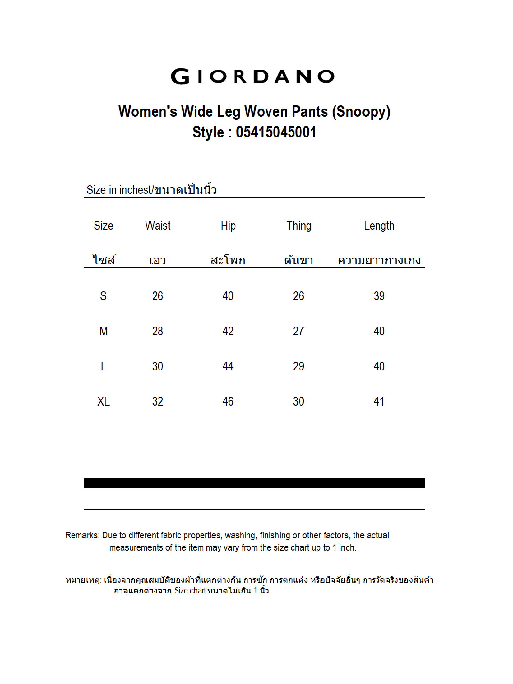 GIORDANO Women's Wide Leg Woven Pants (Snoopy) Black