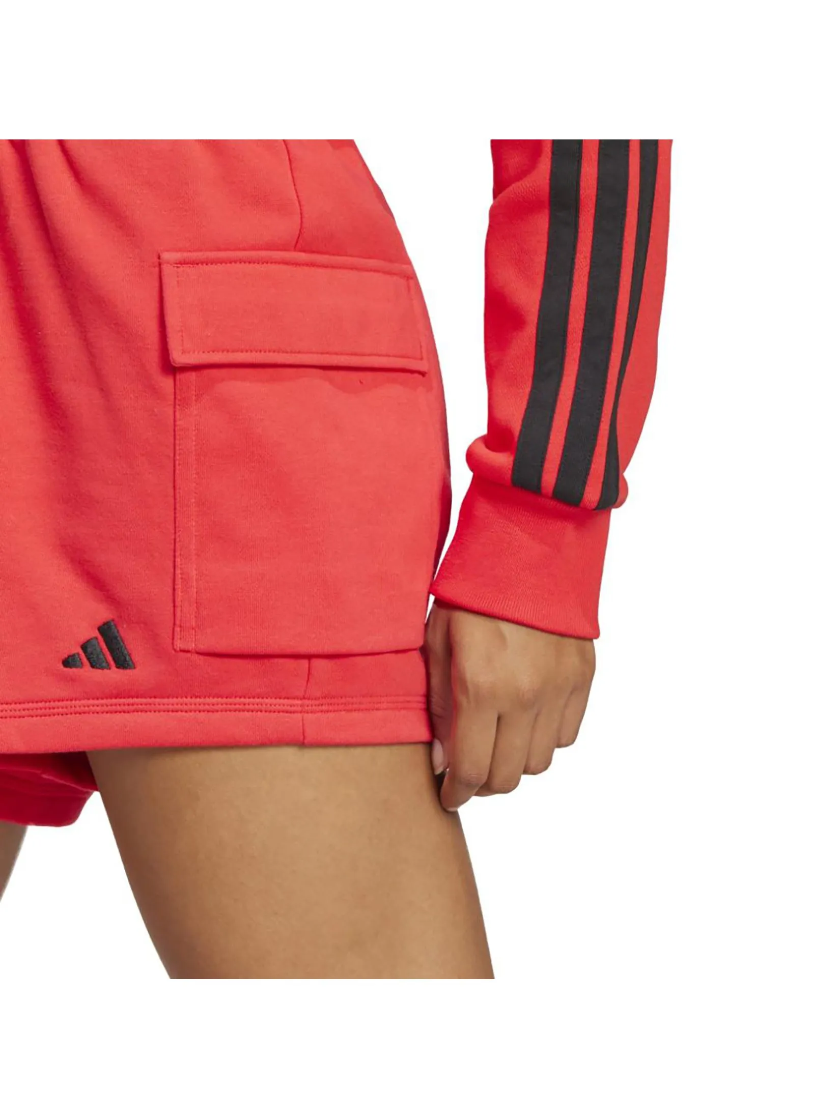 ADIDAS Women Cargo Shorts Essentials Small Logo French Terry Pure Ruby / Black