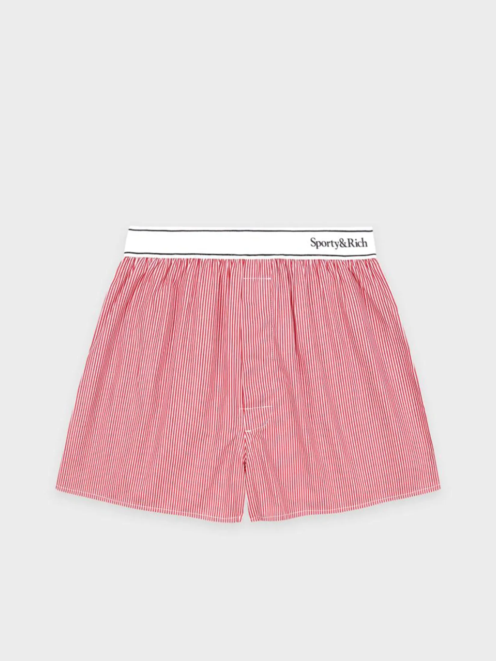 SPORTY & RICH Unisex Boxer Serif Logo - White/Red Stripe