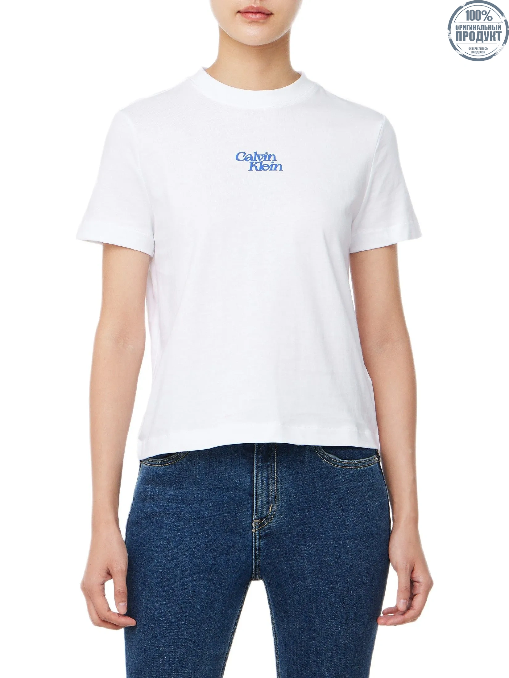 CALVIN KLEIN Women's Fluke Logo Short Sleeve T-Shirt White
