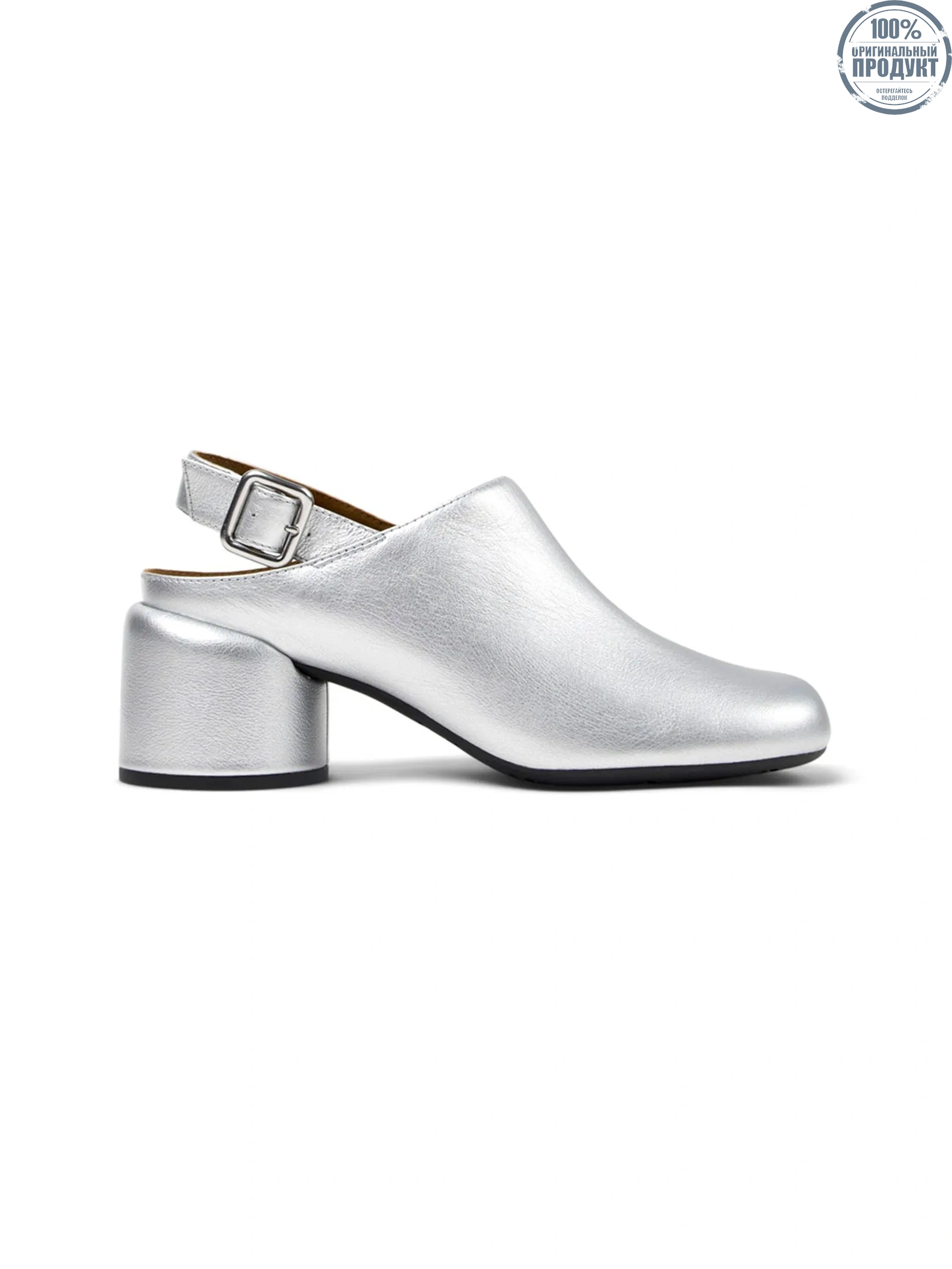 Silver leather women's semi-open shoe with OrthoLite® Recycled™ footbed and ABS & TPU outsole.