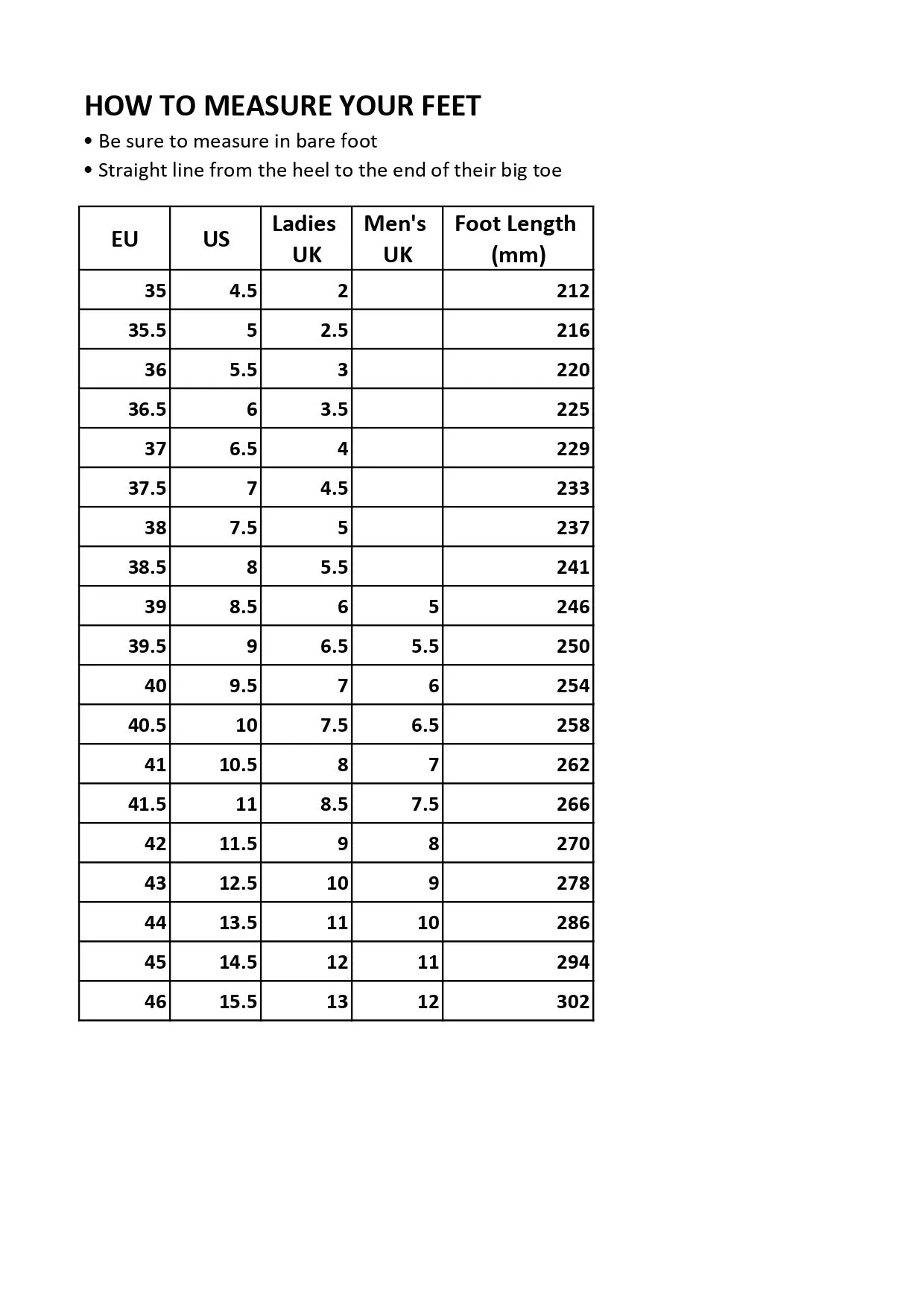 - Size Standard : EU