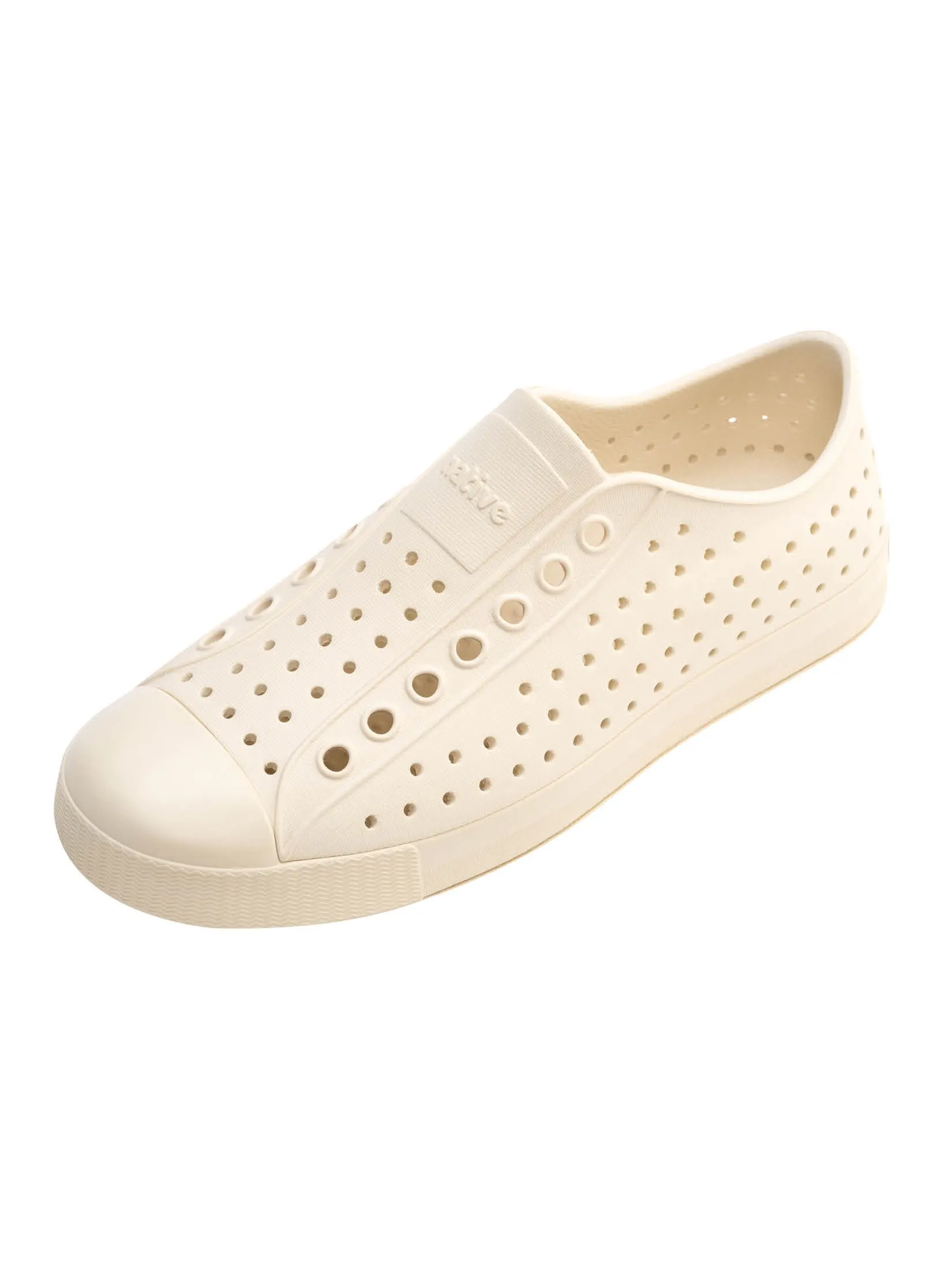 No unfamiliarity for the foot here, the Jefferson is the fearless leader of our EVA offering. Encompassing all of the fine features that you'd expect from a Native shoe, the Jefferson is shock absorbent, odor resistant, hand-washable, and comes in an infinite assortment of colors and treatments. Expect nothing less from the conductor of the lite-weight express.