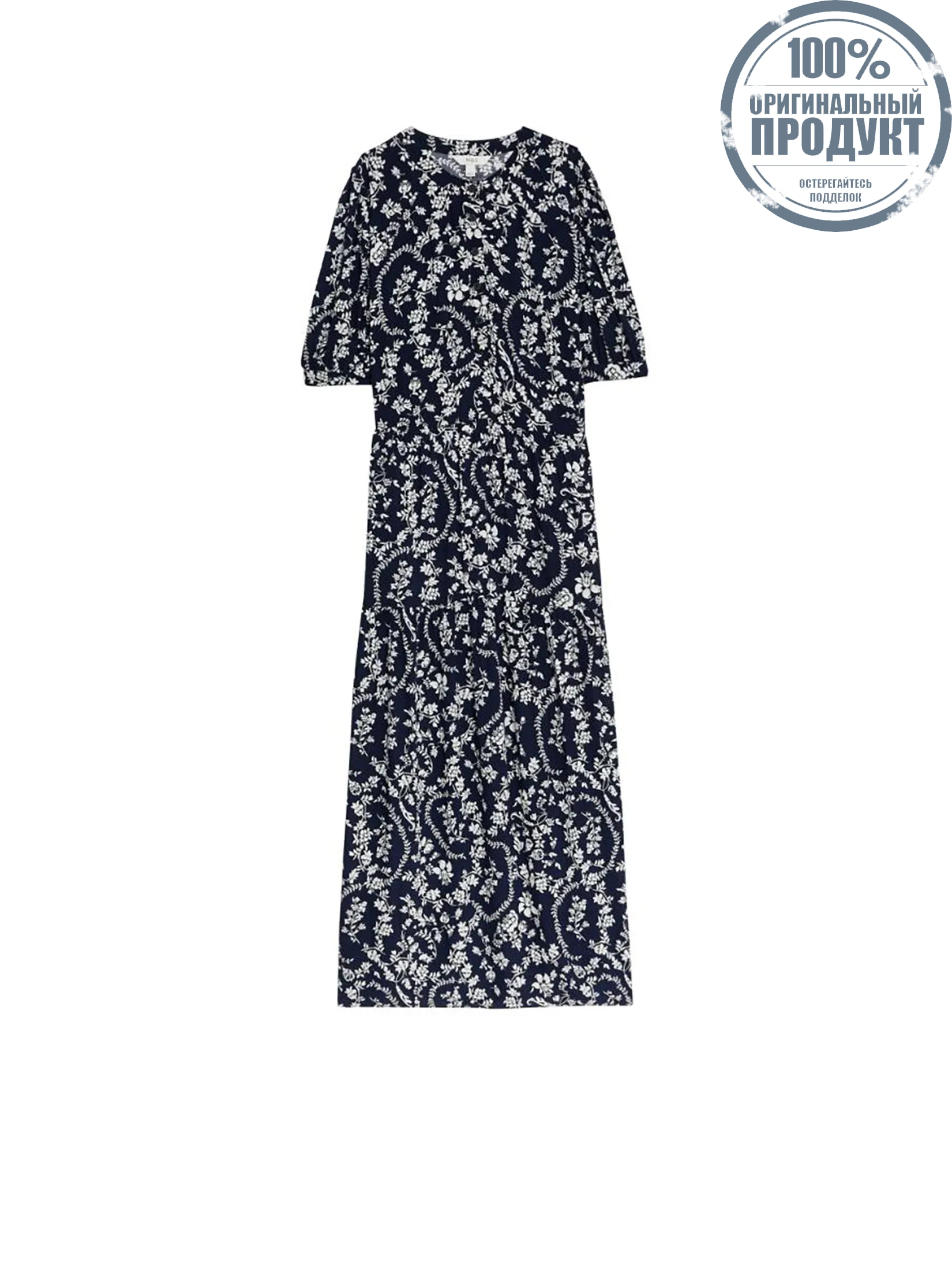 This printed midi dress from MARKS & SPENCER is crafted from lightweight fabric with a delicate floral print for a feminine feel. The regular fit and tiered skirt create a flattering and comfortable shape. It's complete with a buttoned fastening beneath the round neckline and gathered short sleeves. \n\nM&S Collection: easy-to-wear wardrobe staples that combine classic and contemporary styles.\nItem details : Neck to hem length for a size 12:124 cm\nFit and style : Relaxed fit Button fastening \nComposition : 100% viscose